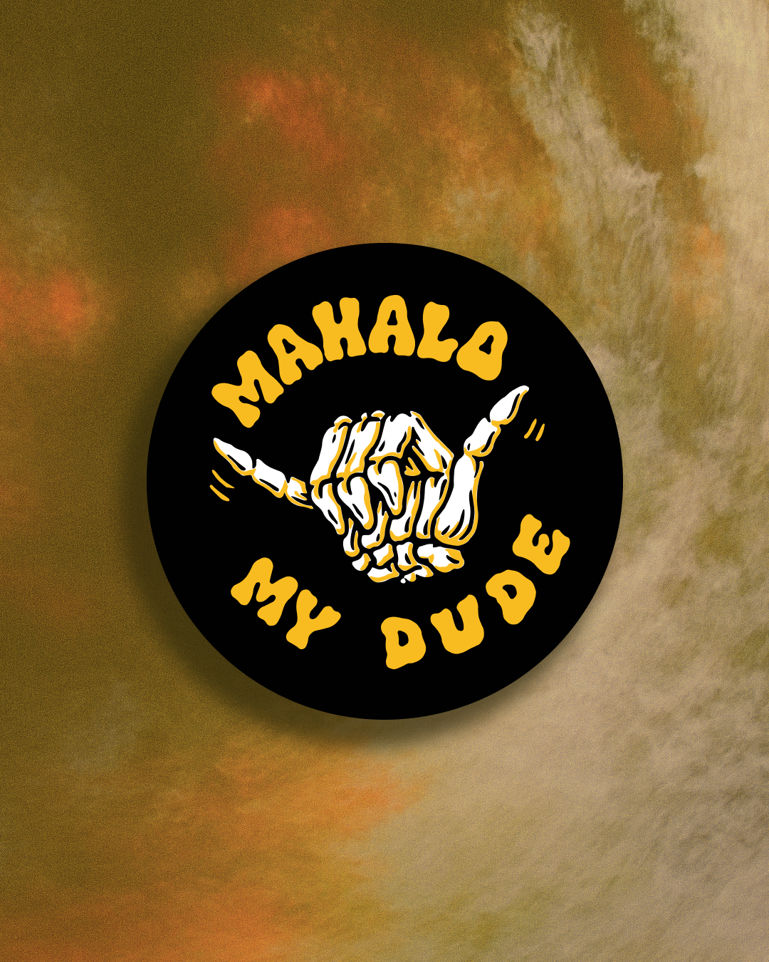 Mahalo My Dude Skeleton Shaka Circle Sticker