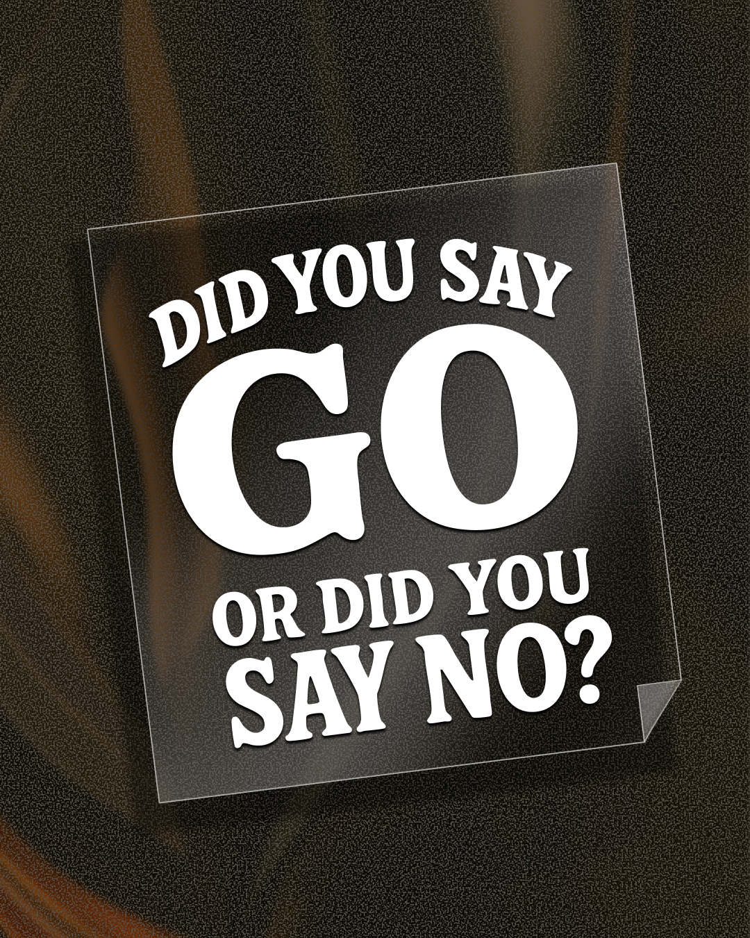 - 1 x Did You Say Go Or Did You Say No sticker in white (2.5" x 2.9")